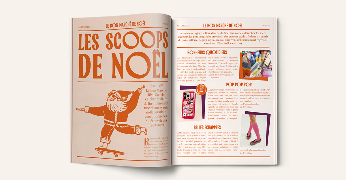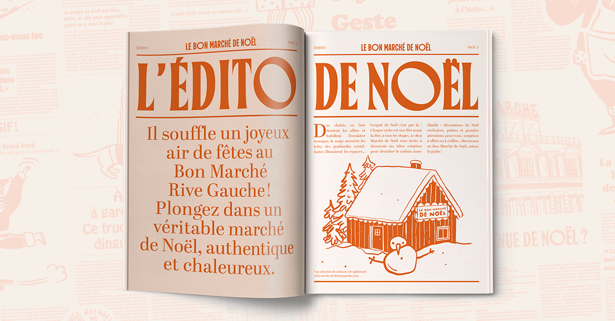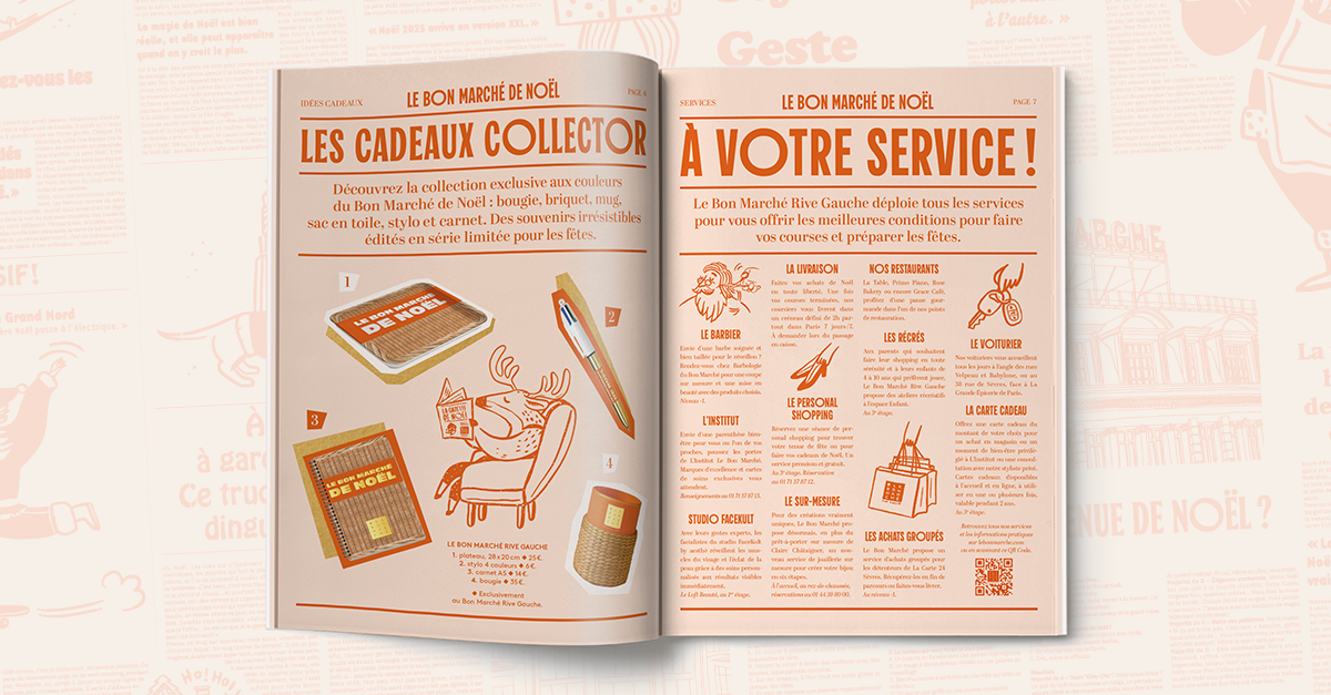LE BON MARCHÉIn 2025, I was commissioned by Le Bon Marché to illustrate their Christmas catalogue, distributed in the prestigious Parisian store.In collaboration with ENTÊTE & BETC.